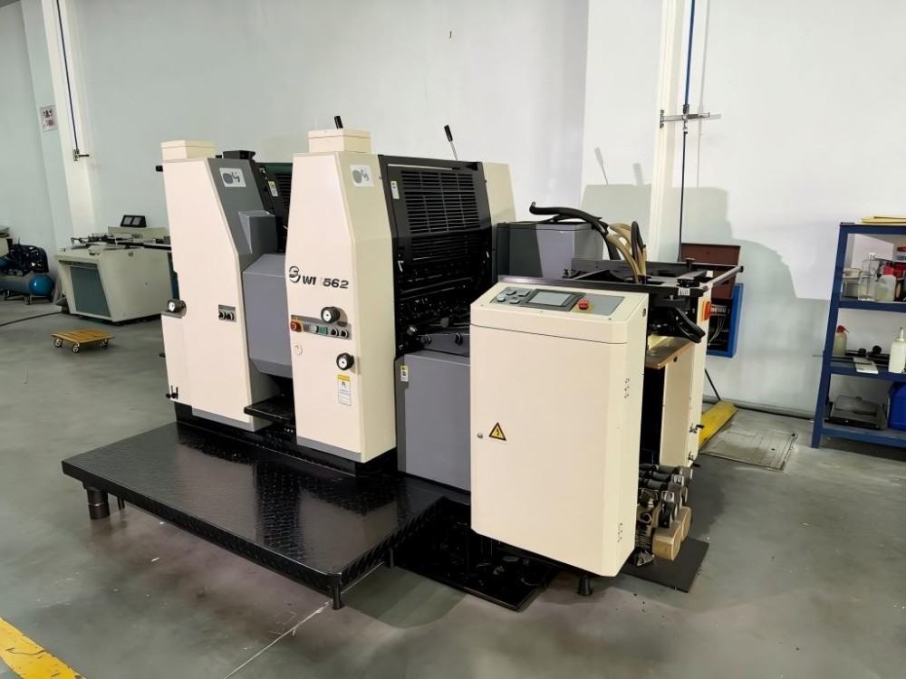 นี่คือเครื่องพิมพ์ออฟเซตการพิมพ์ฉลากสองสีขนาด A2 มันถูกสร้างขึ้นมาสำหรับการดำเนินการผลิตขนาดเล็กถึงขนาดกลาง มันเป็นเรื่องของประสิทธิภาพและใช้งานง่าย สามารถพิมพ์สองสีได้ในกระดาษใบเดียว ซึ่งช่วยประหยัดเวลาและการทำงาน มีอุปกรณ์กำหนดตำแหน่งและปรับความตึงอย่างรวดเร็วสำหรับการติดตั้งเพลต ซึ่งจะช่วยลดระยะเวลาในการเปลี่ยนแปลง มีระบบทำความสะอาดลูกกลิ้งหมึกกึ่งอัตโนมัติด้วย ซึ่งจะช่วยเร่งการเปลี่ยนสีและลดภาระงานของผู้ปฏิบัติงาน แท่นพิมพ์มีระบบป้อนกระดาษต่อเนื่อง โดยจับคู่กับโต๊ะดูดสุญญากาศและสายพานลำเลียงแบบหมุนได้สามเส้น การตั้งค่านี้รองรับความหนาของกระดาษที่แตกต่างกันได้ดี กริปเปอร์สปริงคู่ช่วยป้องกันไม่ให้กระดาษลื่นไถล นั่นคือกุญแจสำคัญสำหรับการพิมพ์ความเร็วสูง มันมีคุณสมบัติที่ใช้งานได้จริงเช่นกัน สิ่งต่างๆ เช่น การลดแอลกอฮอล์และการปรับปริมาณน้ำอัตโนมัติ อีกทั้งยังมีการส่งกระดาษคุณภาพด้วยหัวดูดลมและล้อดูด