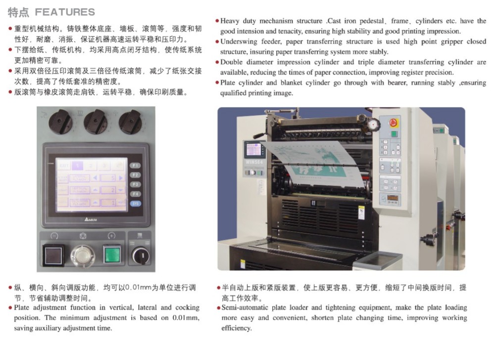 Weihai Printing Machinery Co. Ltd. ผลิตเครื่องพิมพ์ออฟเซตสี่สีแบบตัดแผ่นระดับพรีเมี่ยม ซึ่งเราเรียกว่าเครื่องพิมพ์ระยะสั้นขนาดใหญ่ A3 สี่สี สร้างมาเพื่อพิมพ์บนแผ่น A3 และแผ่นที่ใหญ่กว่าด้วย และให้งานพิมพ์ภาพคุณภาพสูงด้วยความเร็วสูงโดยไม่ลดความเร็วลง เหมาะสำหรับการพิมพ์ในระยะสั้น มันค่อนข้างอเนกประสงค์และตรงไปตรงมา คุณสามารถวิ่งผ่านวัสดุพิมพ์ได้เกือบทุกชนิด ซึ่งหมายความว่าเหมาะอย่างยิ่งสำหรับการผลิตสินค้าเชิงพาณิชย์และบรรจุภัณฑ์ระดับกลางถึงระดับสูง เช่น ฉลากแบบมีกาวในตัว นามบัตรระดับไฮเอนด์ โบรชัวร์ ปกหนังสือ และแทรกสี